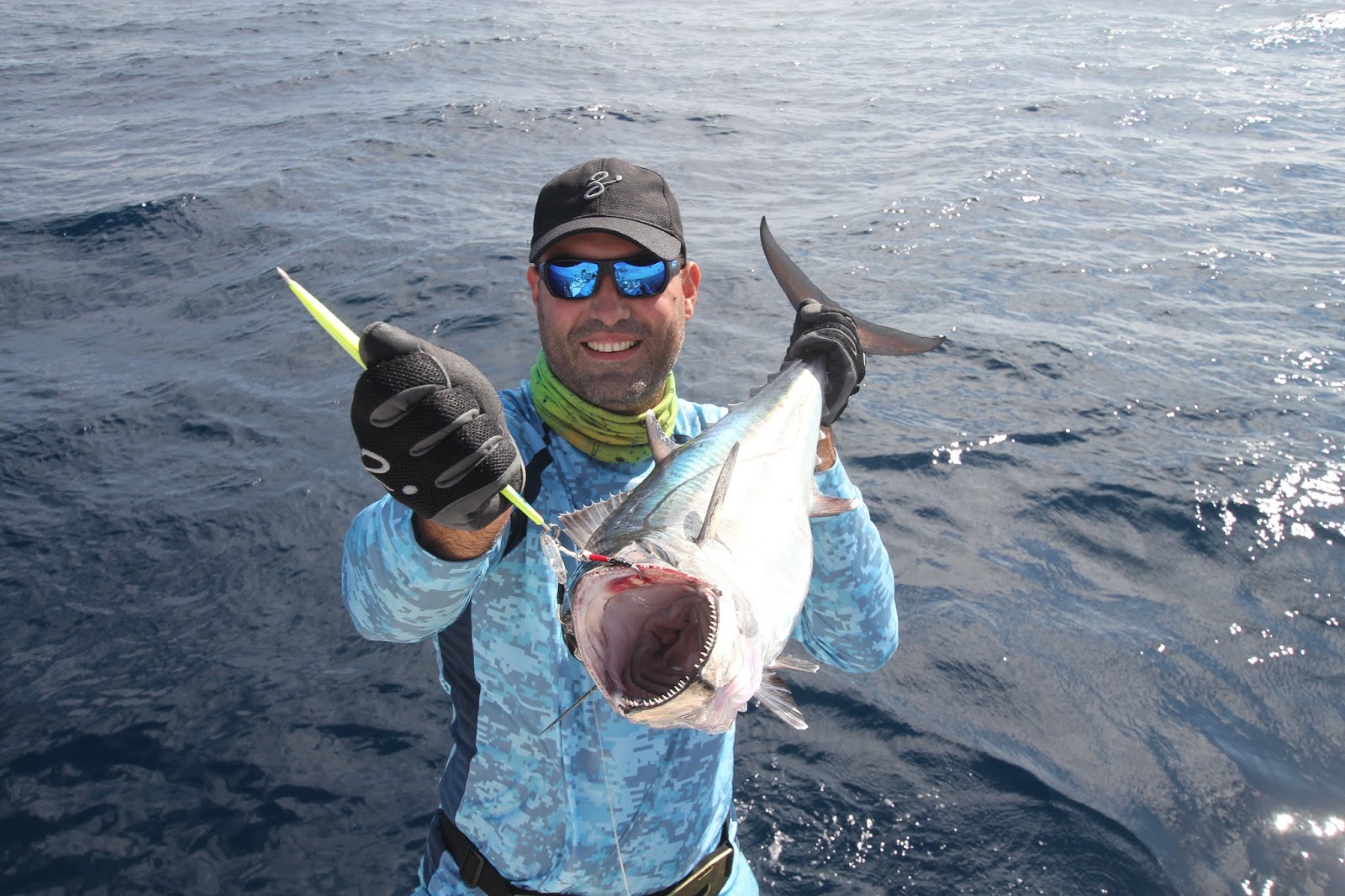 Com uma grande cabeça e depois da verborreia me permitir destilar o fel com que fiquei, acabei por mudar de amostra, não fosse ter mais dissabores parecidos. O sol já estava alto quando ferrei eficazmente num jerkbait (com palheta! Ahahahahaha!) um robalo bem mais pequeno, mas ainda assim lutador e agradável de pôr a seco.